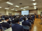 質疑応答の時間では、1・2年生の生徒から「保護者と先輩自身とで進路希望が違った場合にどのような過程で進路決定したか」や「オープンキャンパスや企業見学したときに重視して見ていたことはどのようなことか」など活発な質問が出ましたが、3年生の先輩たちが親身になって答えていました。